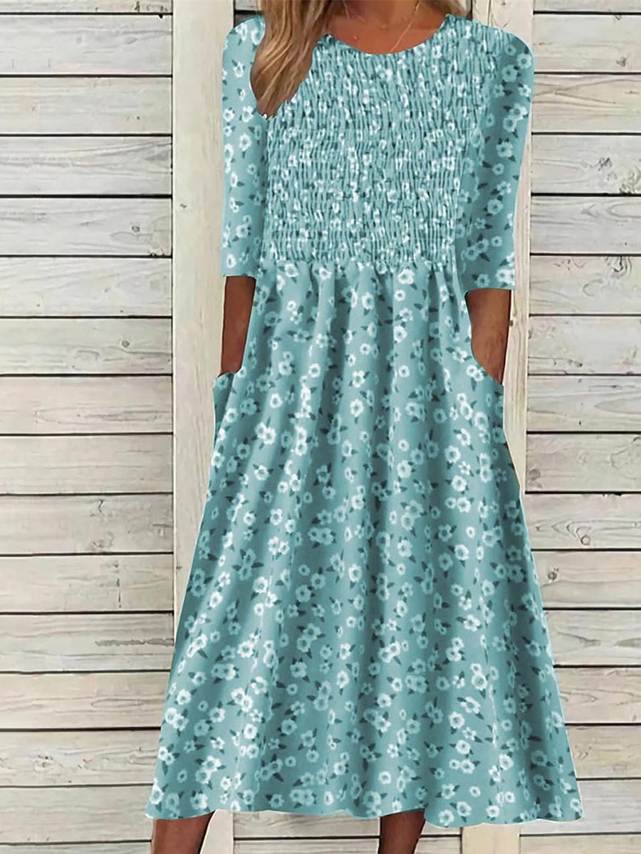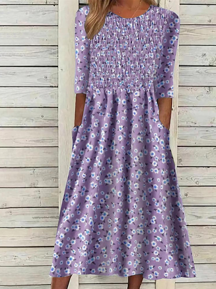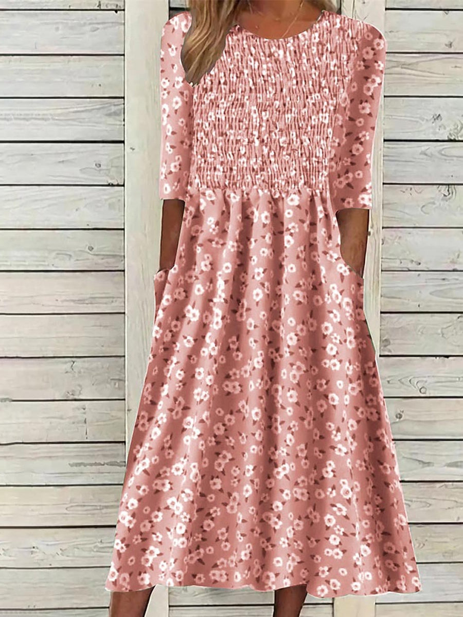 Жените ретро цветен цветен печат талия къс ръкав рокля