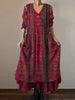 Ретро бохо цветен печат реколта v-neck двойна линия памук с дълги ръкави midi рокля