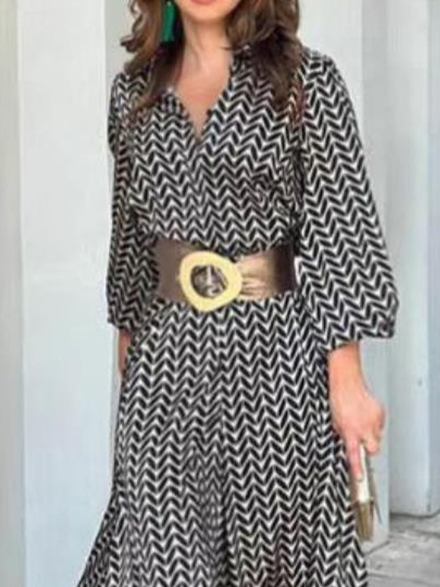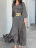 Дамски ретро цветни v-врата дантела-нагоре тънък дълъг ръкав рокля