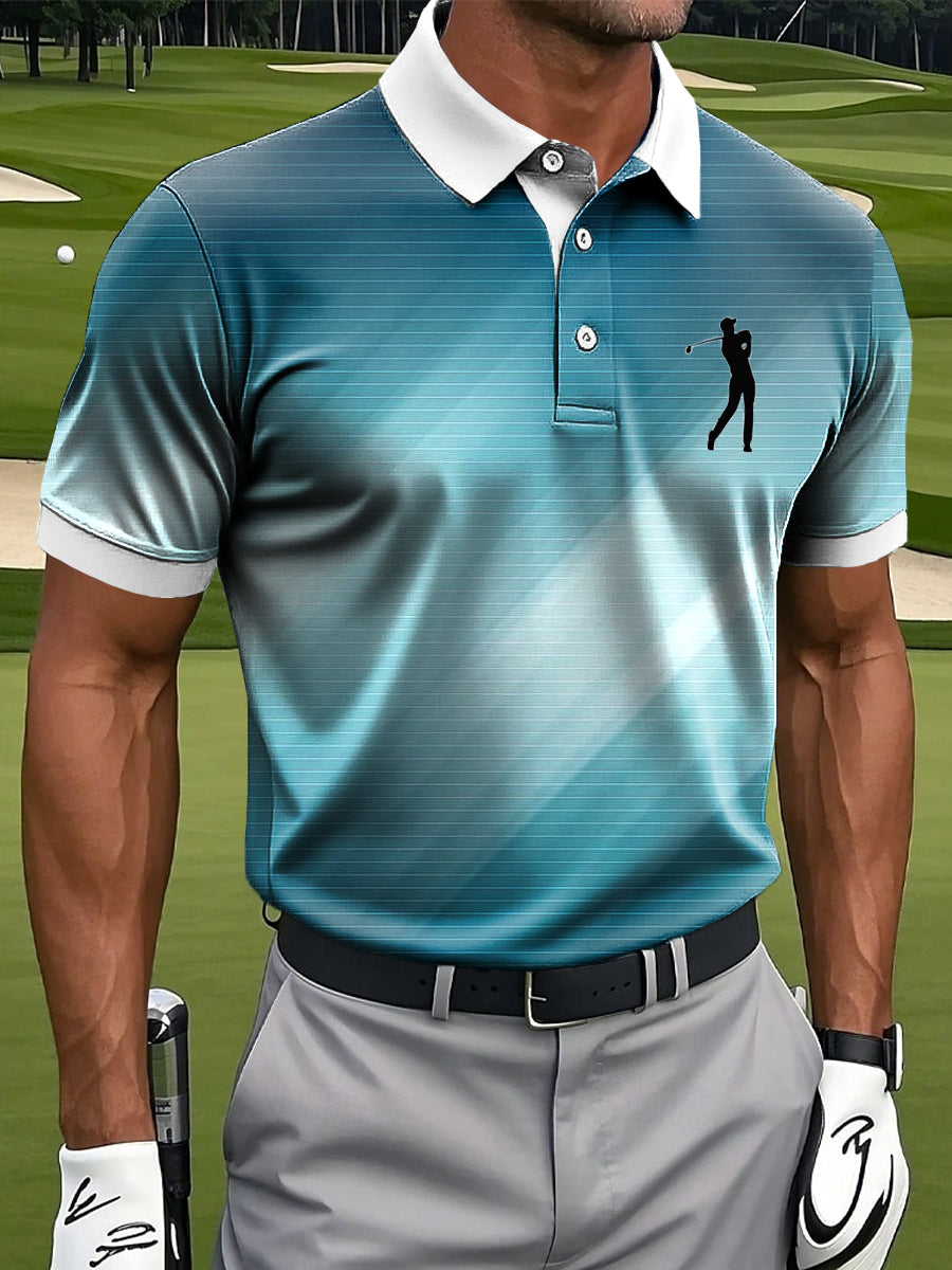 Мъжки ретро градиент текстура изкуство печат случайни бизнес поло риза
