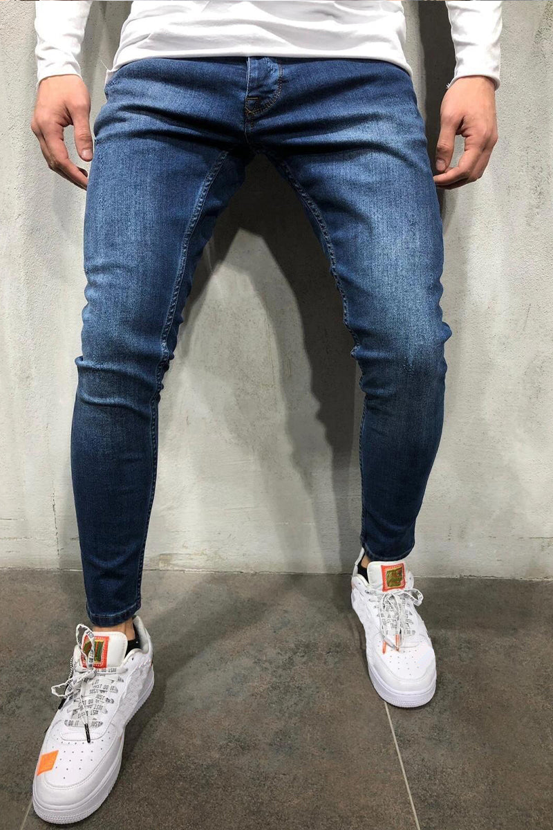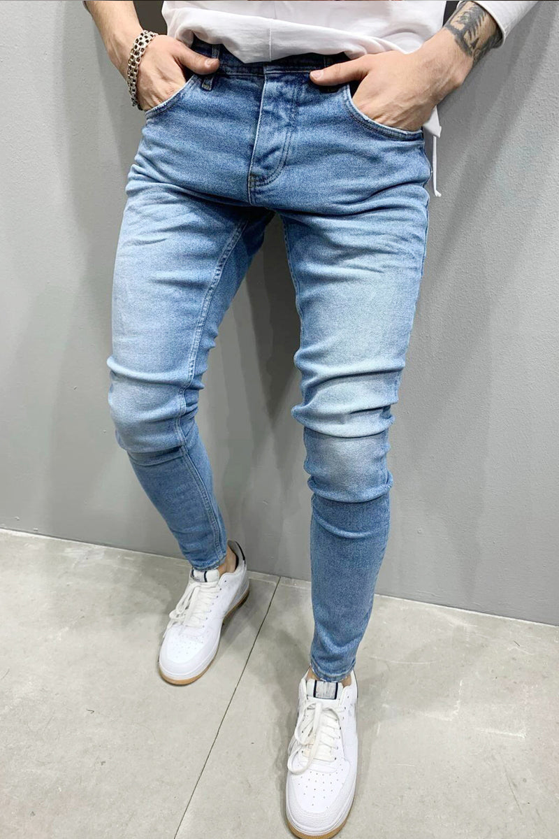 Мъжки случайни плътен цвят опънат кльощава дънки