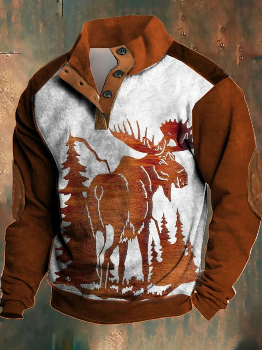 Мъжки западен елен дърво зърно печат стойка яка цип флъш открито суитчър