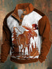 Мъжки ретро western печат висока врата половин цип с дълъг ръкав отгоре
