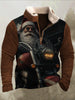 Мъжки реколта мотоциклет дядо изкуство 3d печат ретро козина яка цип флъш открито суитчър