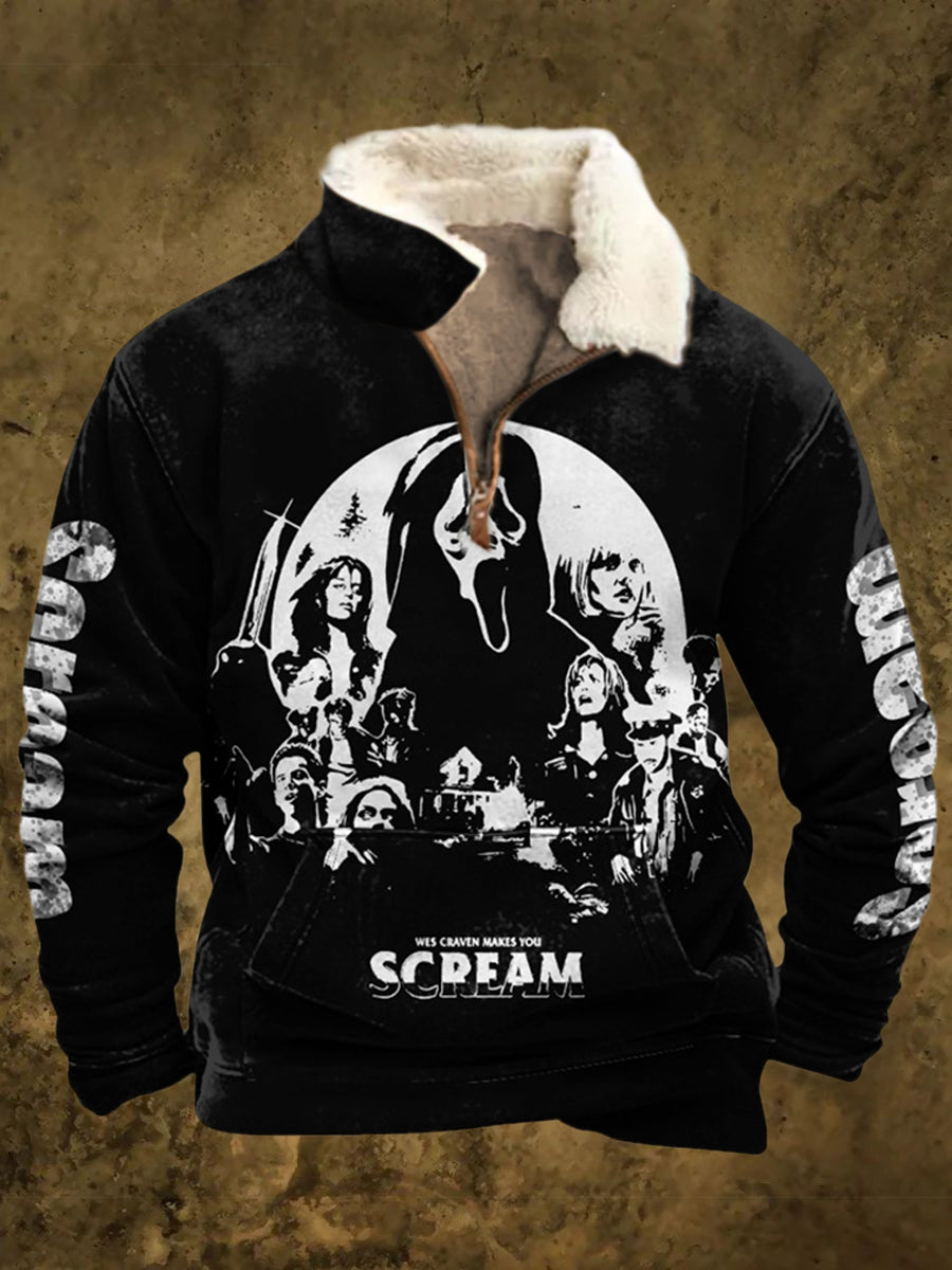 Мъжки ретро western печат висока врата половин цип с дълъг ръкав отгоре