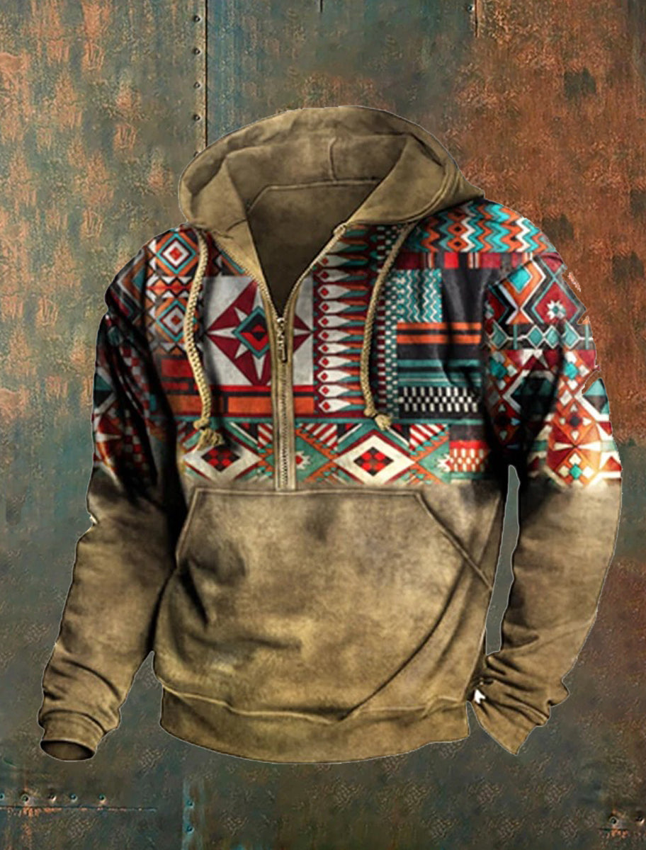 Мъжки ретро western печат висока врата половин цип с дълъг ръкав отгоре