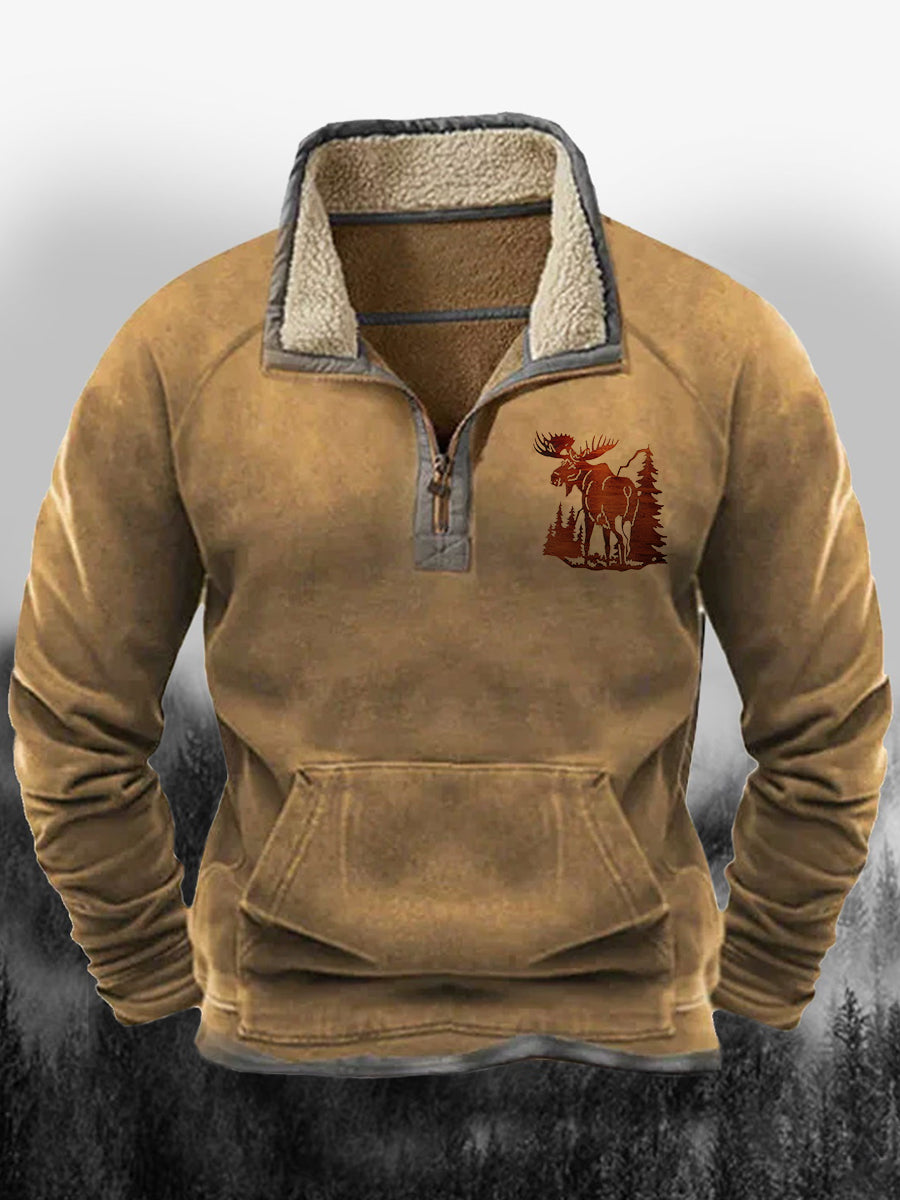 Мъжки ретро western печат висока врата половин цип с дълъг ръкав отгоре