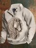 Мъжки ретро western печат висока врата половин цип с дълъг ръкав отгоре