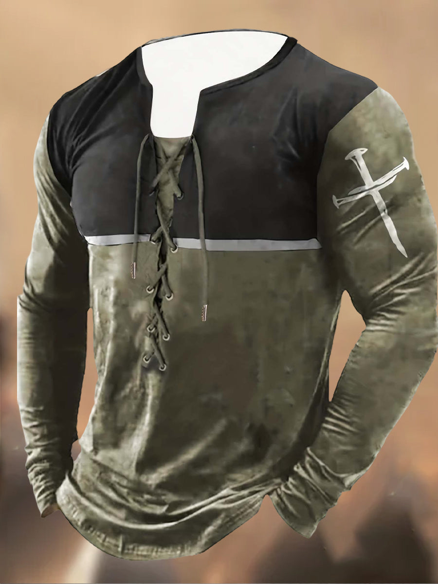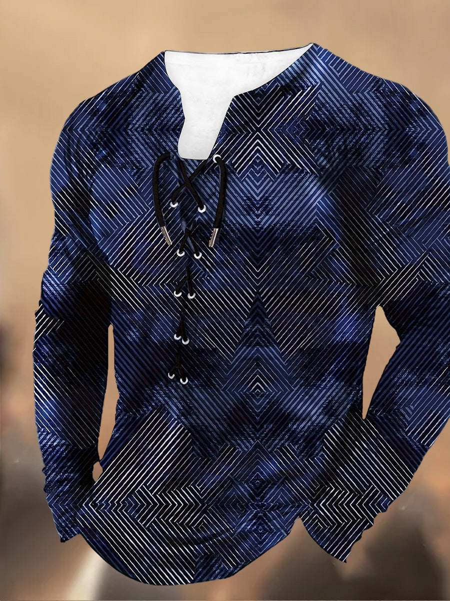 Мъжки ретро печат дантела с качулка с дълги ръкави случайни отгоре