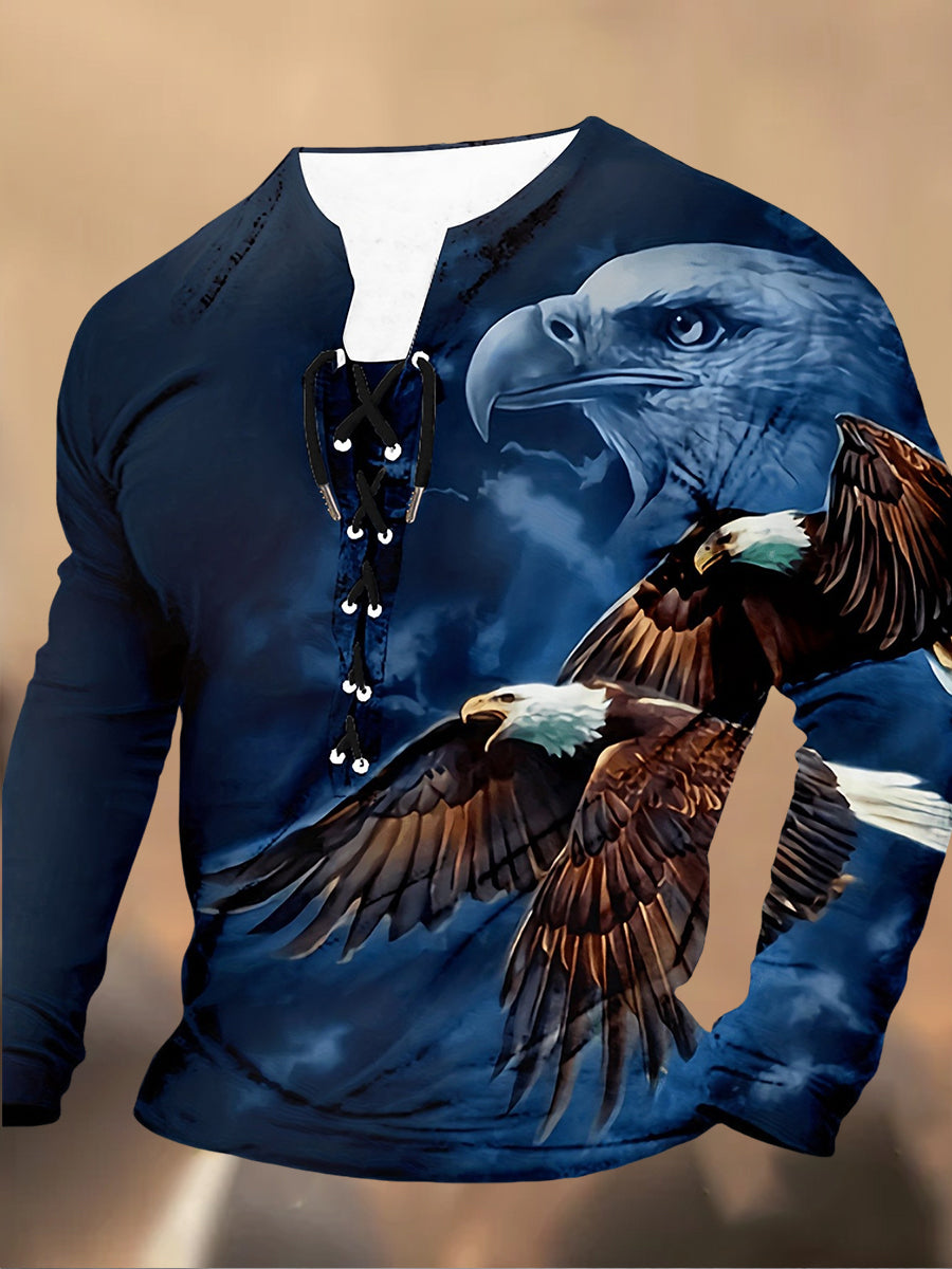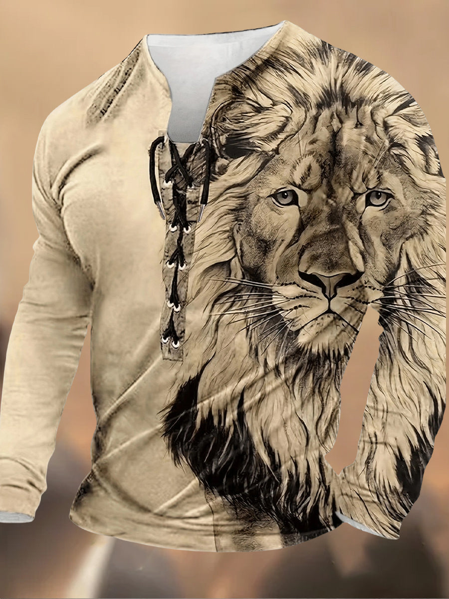 Мъжки ретро печат дантела с качулка с дълги ръкави случайни отгоре
