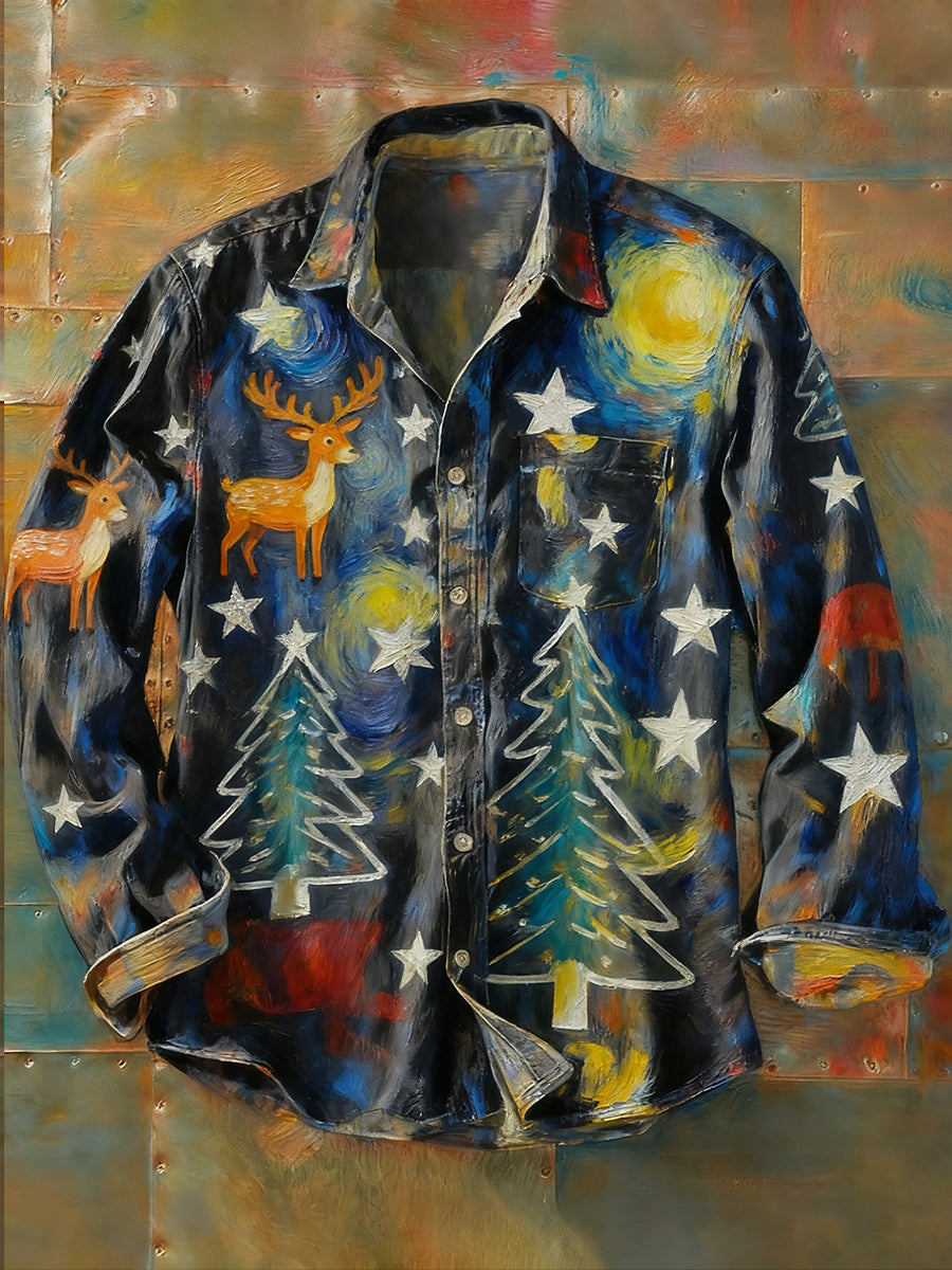 Мъжки ретро абстрактно изкуство печат случайни с дълги ръкави риза