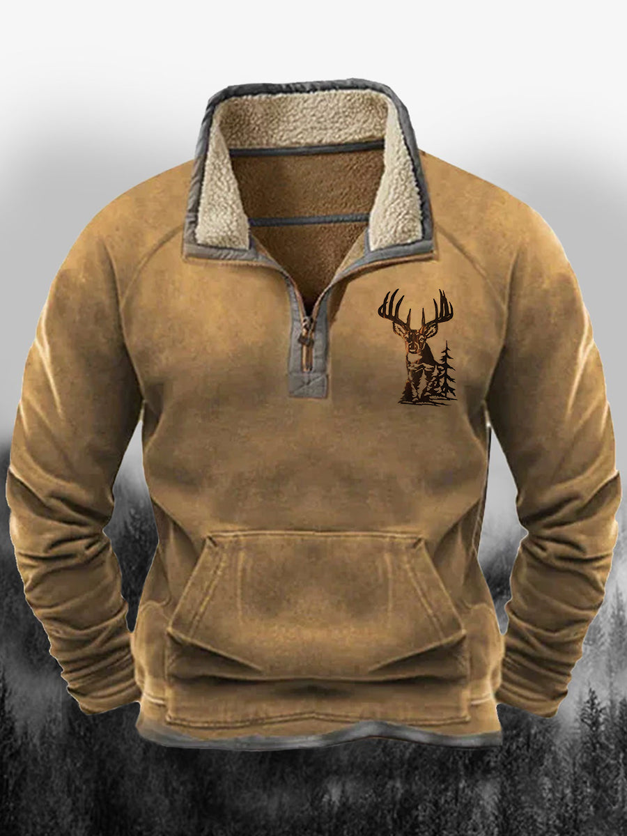 Мъжки реколта ловец ловен печат ревера пухкави яка цип случайни хлабав суитчър
