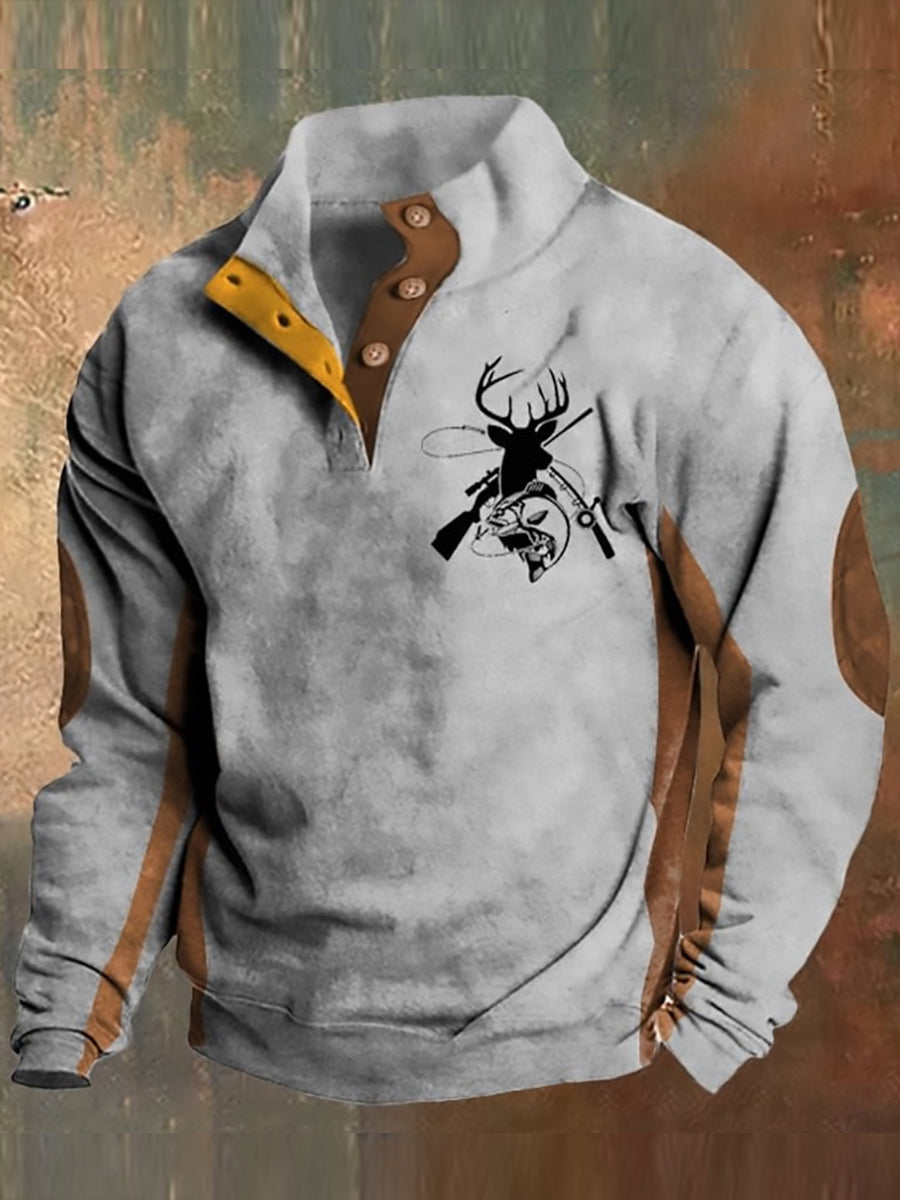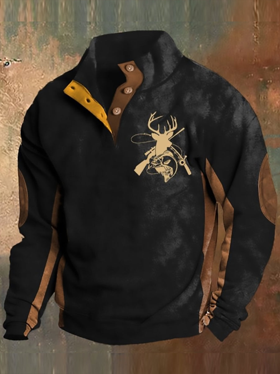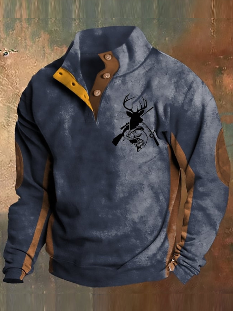 Мъжки ретро western печат висока врата половин цип с дълъг ръкав отгоре