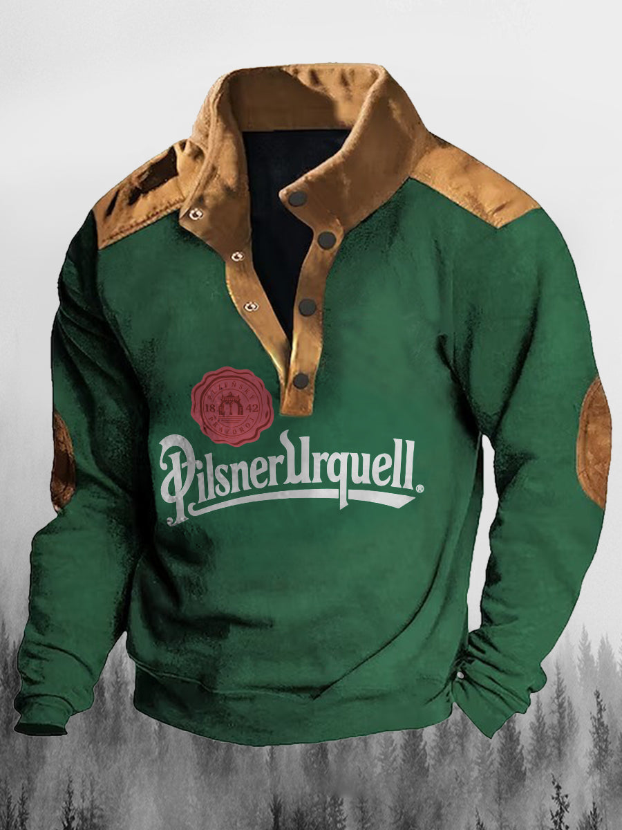 Бира спиртни напитки култура печатни ревера стойка яка ревера бутон случайни хлабав суитчър