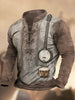 Мъжки ретро western печат висока врата половин цип с дълъг ръкав отгоре