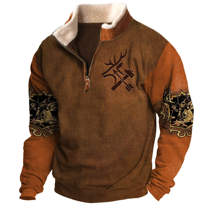 Мъжки ретро western печат висока врата половин цип с дълъг ръкав отгоре