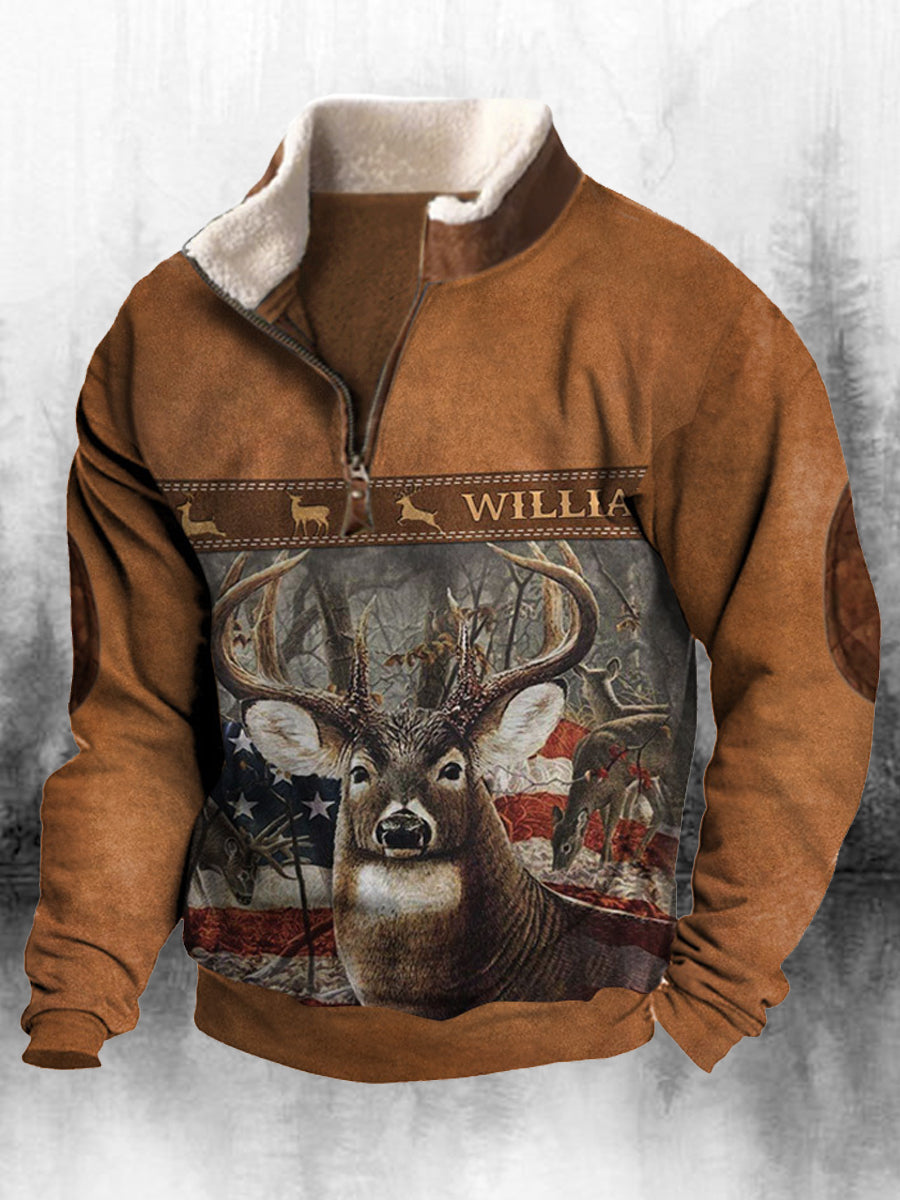 Мъжки ретро western печат висока врата половин цип с дълъг ръкав отгоре
