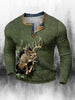 Мъжки ретро западен печат колела разхлабени 3 бутон хенли врата с дълъг ръкав отгоре