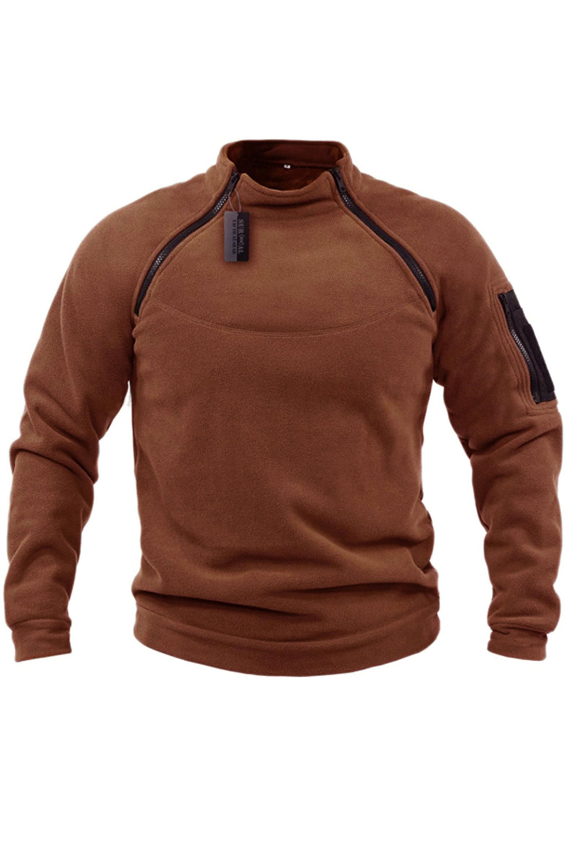 Мъжки хлабав плътен цвят на открито удебелена топла дишаща стойка яка суитчър