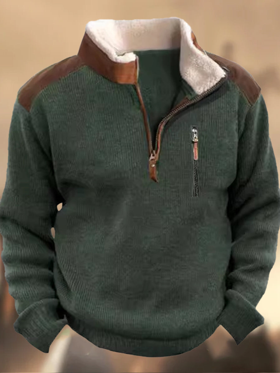 Мъжки хенри стойка яка ретро открит случайни цип тактически пуловер спортен суитчър
