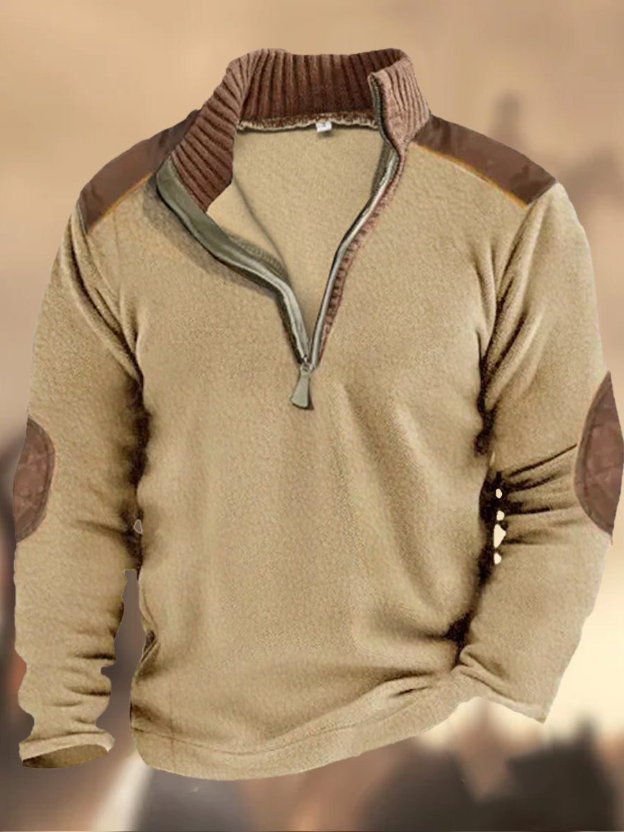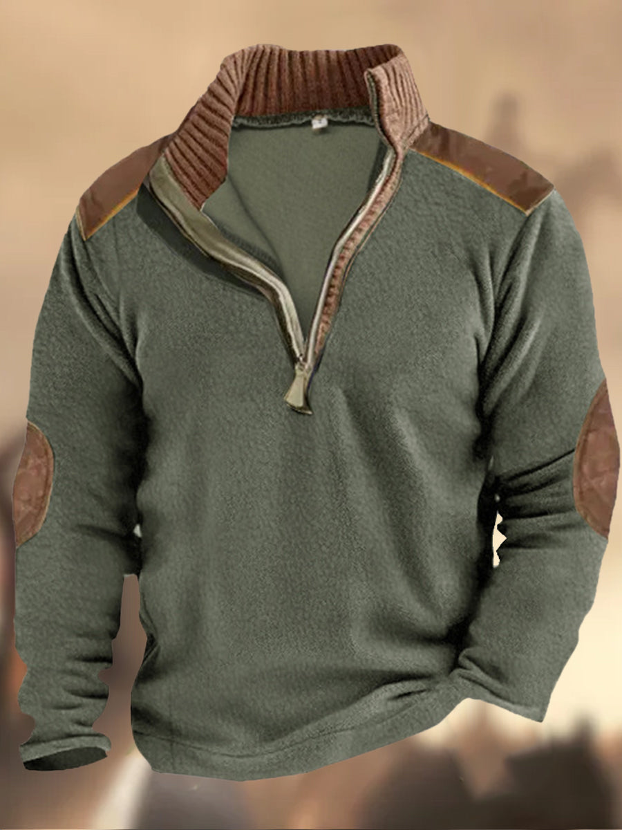 Мъжки ретро western печат висока врата половин цип с дълъг ръкав отгоре