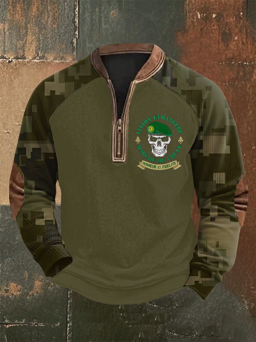 Мъжки ретро western печат висока врата половин цип с дълъг ръкав отгоре