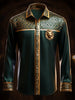 Мъжки ретро етнически печат висока яка половин цип дълъг ръкав отгоре