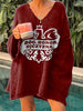 Жените артистични животински печат удобен плетене с къс ръкав отгоре