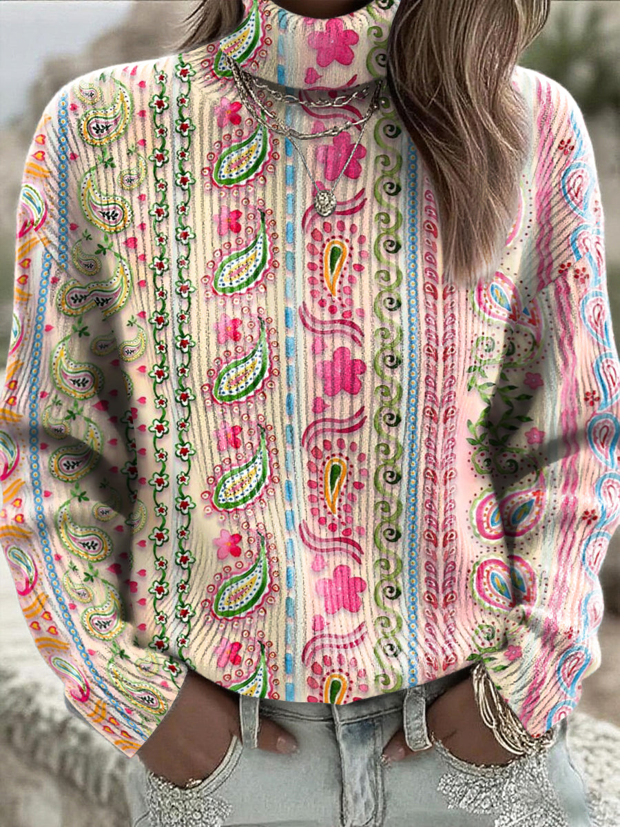 Мъжки ретро western печат висока врата половин цип с дълъг ръкав отгоре