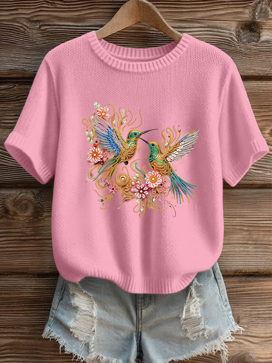 Жените артистични животински печат удобен плетене с къс ръкав отгоре