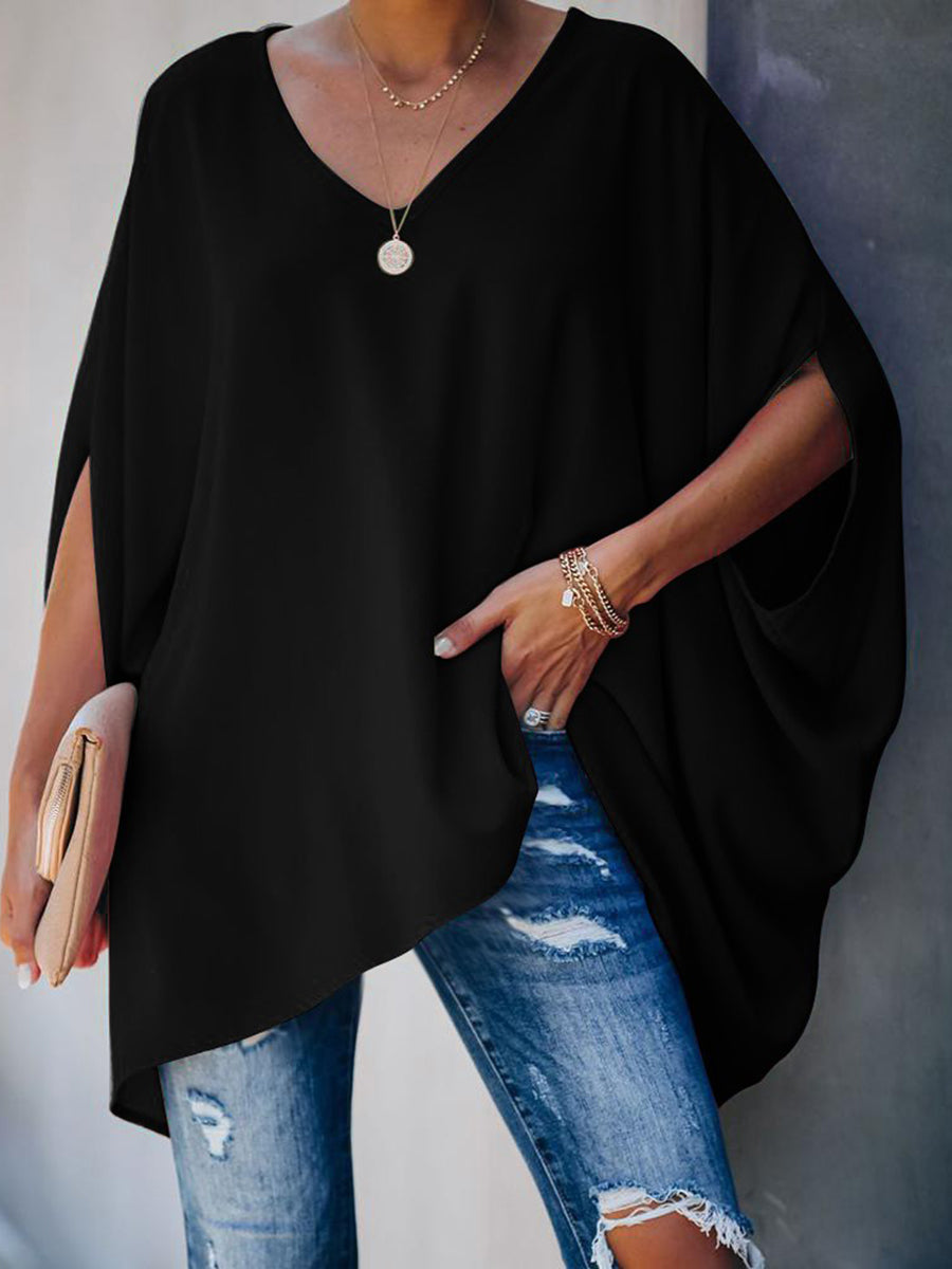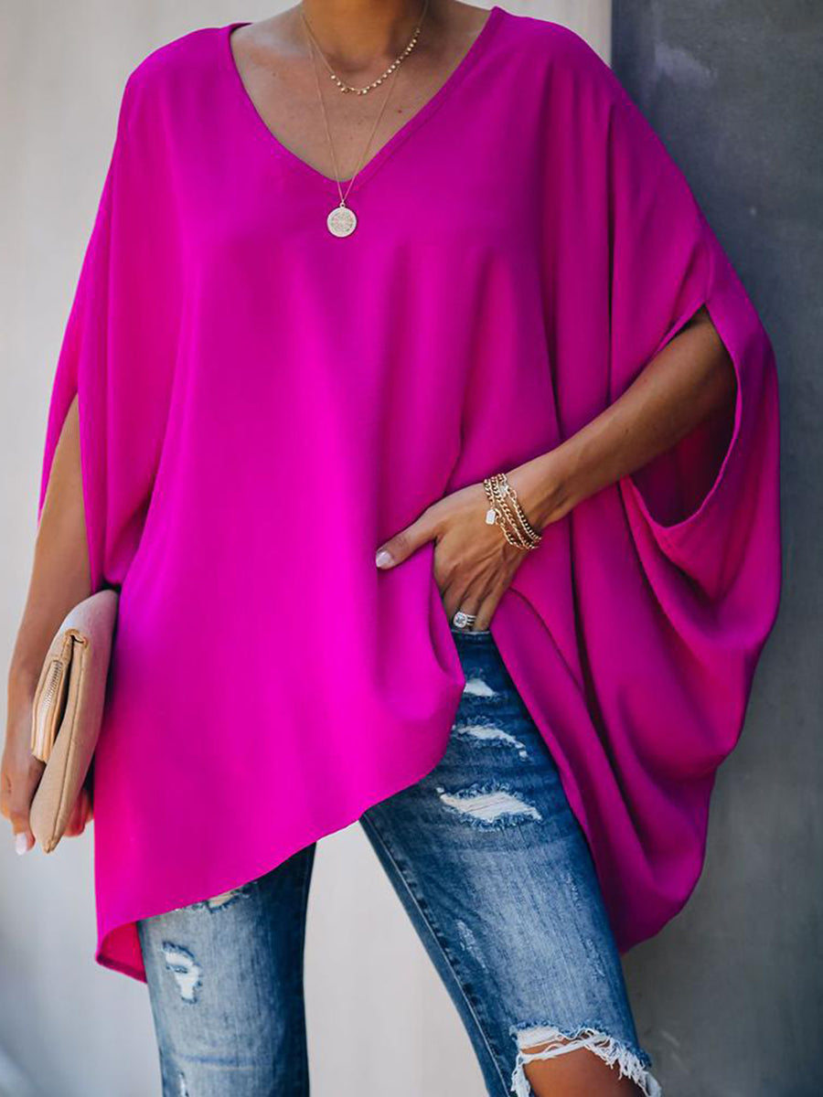 Жените случайни плътен цвят v-neck прилеп ръкава тениска за жени