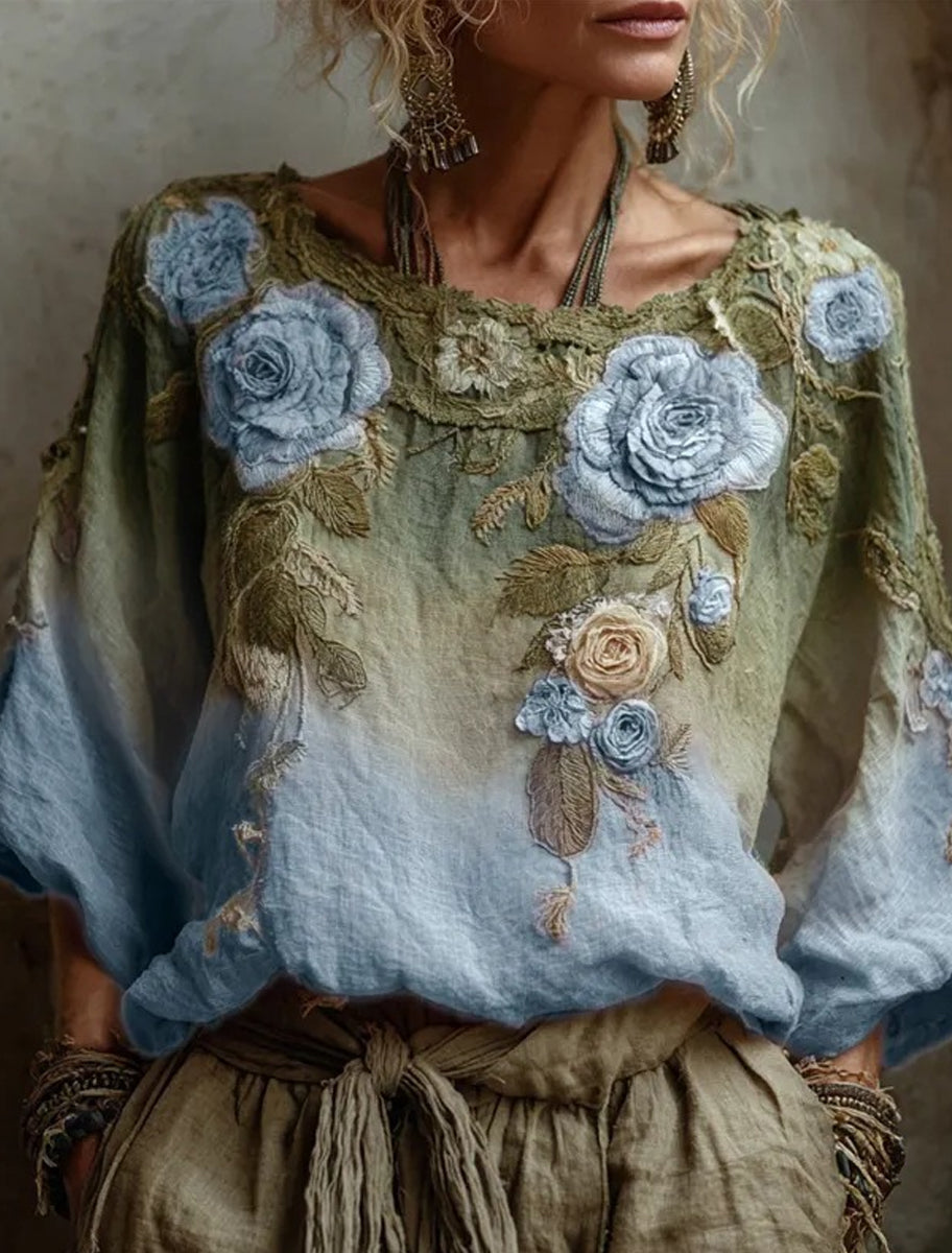 Мъжки ретро етнически печат висока яка половин цип дълъг ръкав отгоре