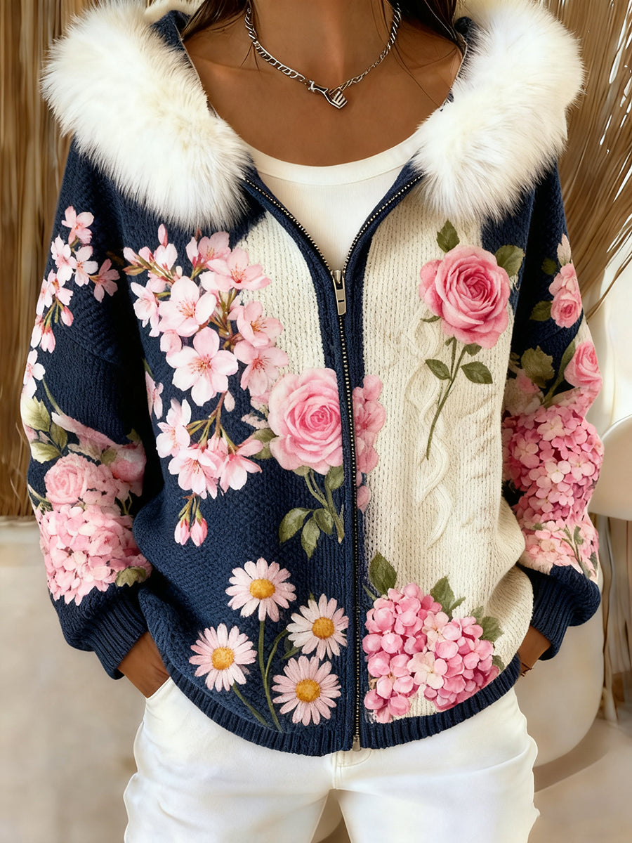 Дамски ретро флорално изкуство удобен плюшен качулка жар